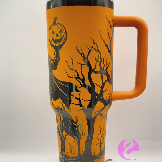 Ride into spooky season with our Headless Horseman Stanley tumbler! Featuring a seamless laser-engraved wrap of the infamous headless rider charging into the night, this tumbler blends eerie folklore with sleek, modern drinkware.This laser-engraved tumbler reveals the sleek metal base underneath for a striking look. Crafted to keep the Stanley logo untouched, it combines durability with a unique design.
