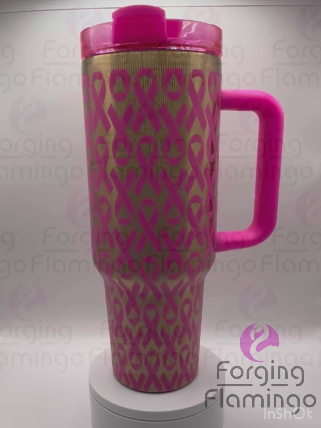 Show your support with our Breast Cancer Ribbon Stanley tumbler, featuring a meaningful wraparound ribbon design symbolizing strength and hope. Laser-engraved to reveal the sleek metal base beneath, this tumbler keeps the Stanley logo untouched and includes a straw for easy sipping.